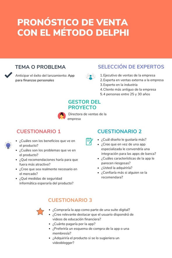 En la imagen mostrada, te compartimos un ejemplo basado en el método Delphi que te funcionará como guía para realizar esta técnica en tu empresa.