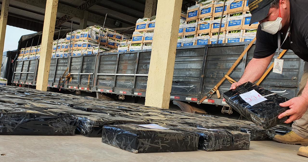 Mediante los controles conjuntos entre personal de la SENAD y Aduanas, bajo la coordinación del Ministerio Público, en la fecha fue descubierto un importante alijo de drogas oculto dentro de una carga de bananas.