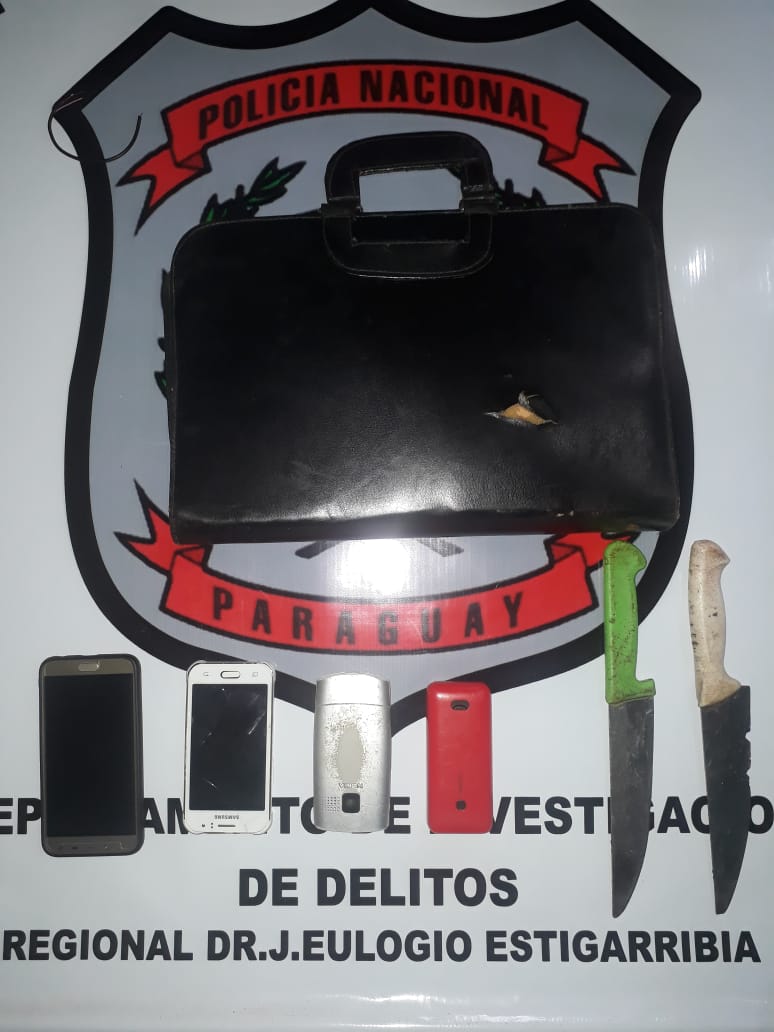 personal de éste Departamento, en prosecución a las denuncias, en virtud al Art.297, inc. 4 y 5 del C.P.P., tras recolectar informaciones de fuentes humanas, que dan cuentas por donde se encontraría los supuestos autores, quienes fueron gravados por los circuitos cerrados de los locales comerciales en el momento del hecho y serían autores de varios hechos punibles dentro de la zona y el día de la fecha en la hora indicada, en la vía pública se pudo localizar a los mismos, procediéndose inmediatamente a la aprehensión y de su poder fueron incautados los aparatos celulares de las víctimas, dos arma blanca (cuchillo) y la motocicleta utilizada en el momento del hecho. Posteriormente los aprehendidos y los objetos incautados fueron trasladados hasta la Oficina Regional para el procedimiento de rigor.