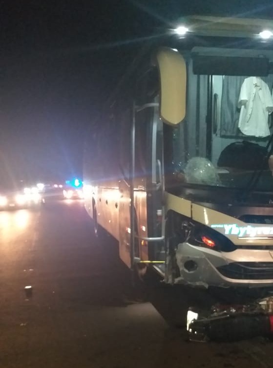 -MUERTE Y DAÑOS MATERIALES EN ACCIDENTE DE TRANSITO (CHOQUE DE ÓMNIBUS CONTRA MOTOCICLETA), ocurrido el día de la fecha 19/01/2020, a las 21:30 horas aprox., sobre La Ruta II a la altura del Km. 225 de esta ciudad, protagonizado por Ómnibus de la Empresa Yvyturusu, con Chapa N° AABX 351 Py., guiado por ANIBAL PEÑA RAMÍREZ, paraguayo, casado, 47 años de edad, con C.I. N° 2.083.864, domiciliado en Mauricio José Troche Dpto. de Guairá, con licencia de conducir categoría profesional “B”, expedido por la Municipalidad de Villarrica y la motocicleta de la marca Star, modelo 125, color rojo, con chapa N° 319 HFV Py., guiado por EULALIO MARTÍNEZ BENÍTEZ, paraguayo, indígena de la parcialidad Mbya Guaraní, soltero, 18 años de edad, mayor de edad, domiciliado en la comunidad San Juan de este distrito, quien resultó víctima fatal y los vehículos quedaron daños materiales