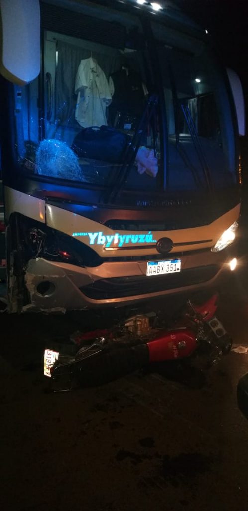 Un indígena de 18 años perdió la vida anoche a la altura del Km 225 de la ruta 2 en un choque a bordo de su motocicleta contra un ómnibus de la empresa Ybyturusú. El accidente se produjo a las 21:30 horas del que resultó víctima fatal Eulalio Martinez Benitez de la comunidad de San Juan de Dr J. E. Estigarribia.