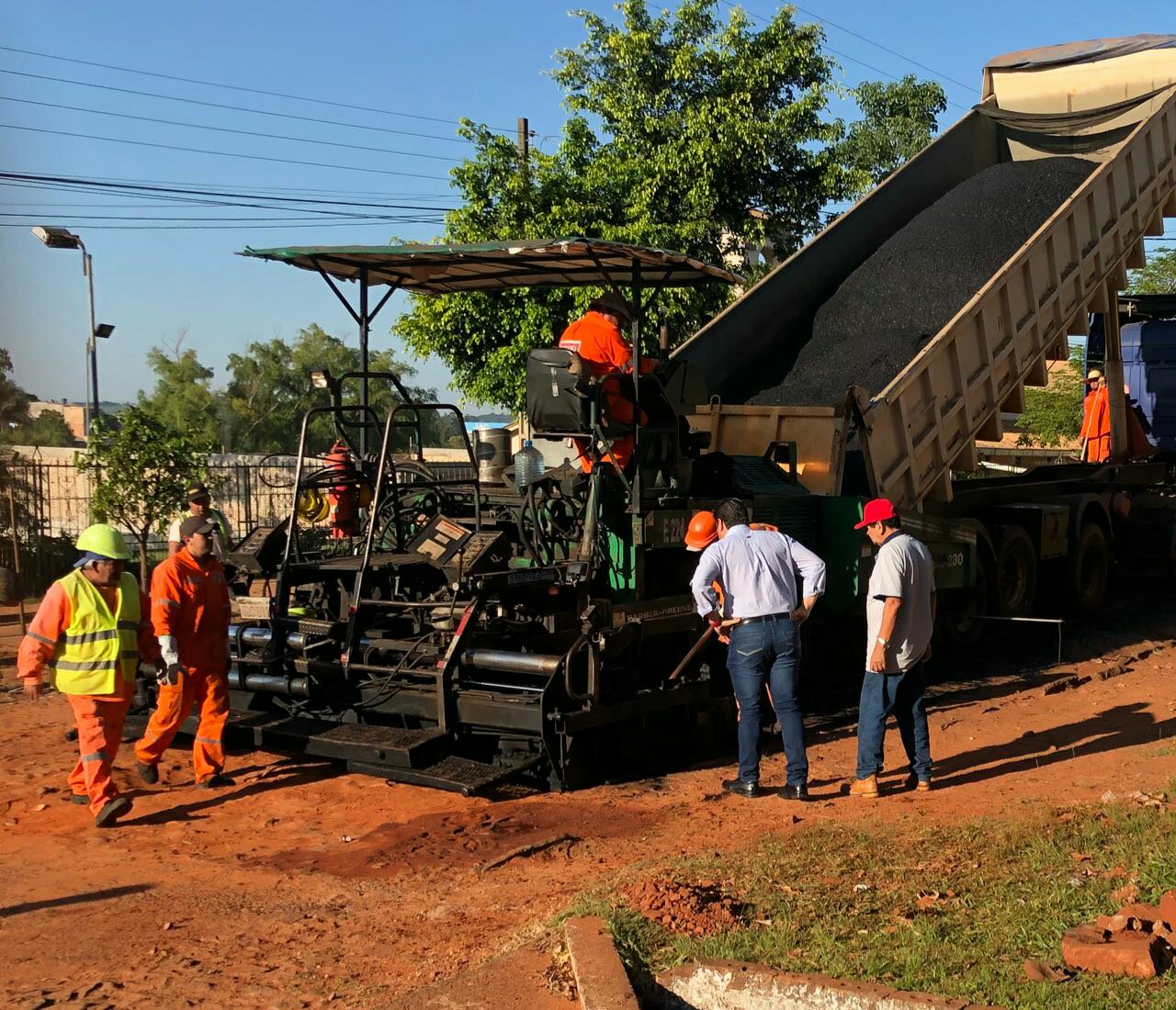 Esta mañana el Intendente Municipal acompañó inicio de la obra sobre calle San José Obrero, en total se asfaltarán 80 cuadras del casco urbano mediantes la firma de un convenio Inter-institucional entre la Municipalidad, la MOPC y la ITAIPU Binacional, proyecto solicitado por el Intendente Derlis Espínola.