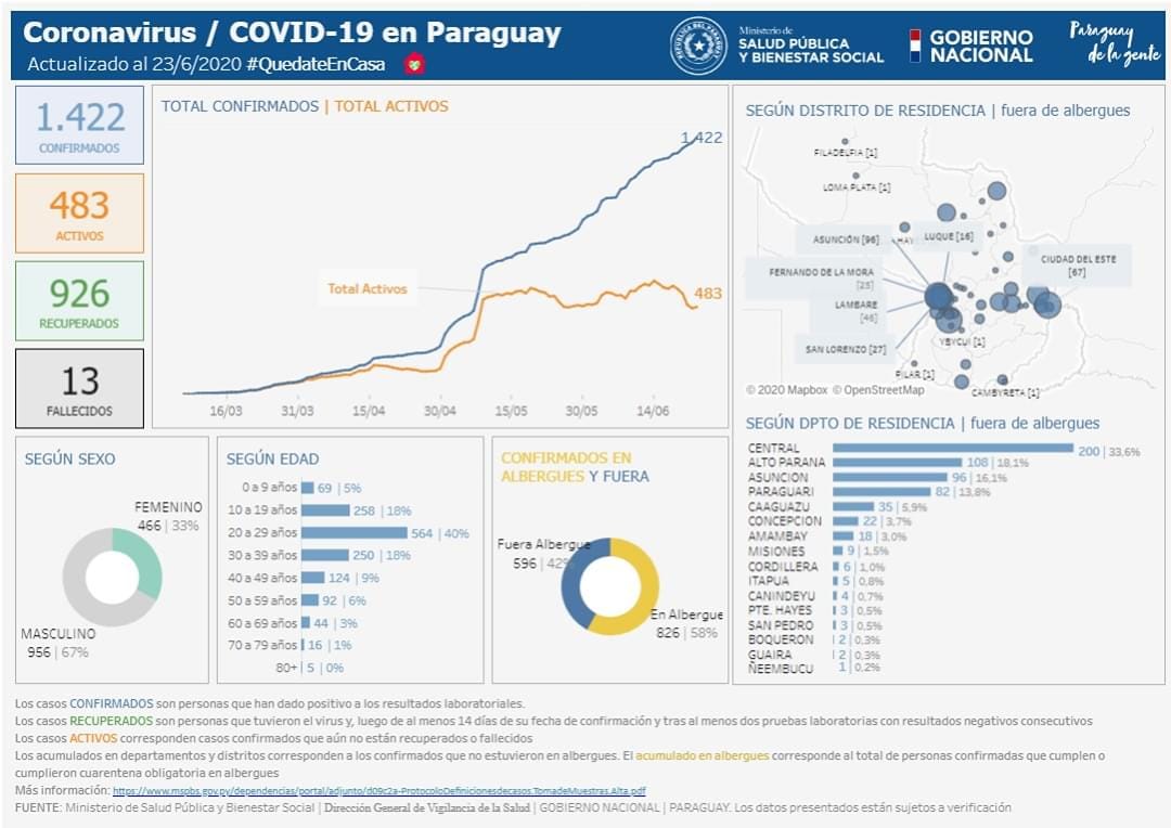 De dicho informe se desprende los dos casos de contagiados en el distrito de Caaguazú y un nuevo caso en el distrito de Dr. Juan Eulogio Estigarribia.