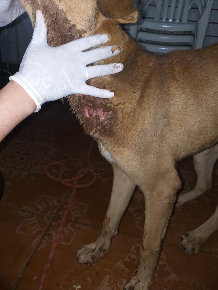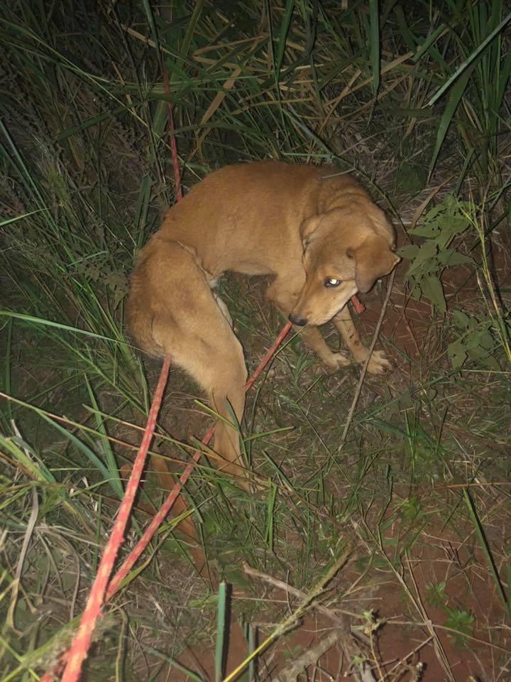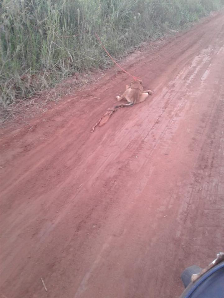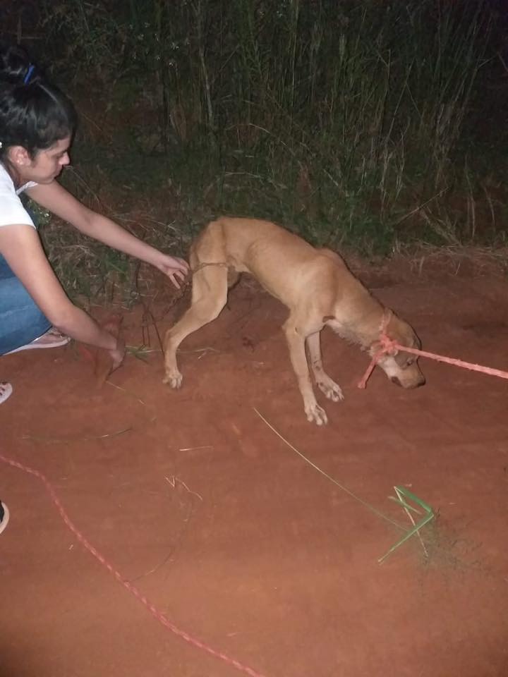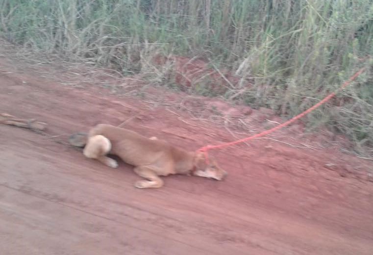 La denuncia mediática se refiere a un animal que fue abandonado sobre la calle Eleno Benitez, la que pasa frente al estadio municipal, luego de haber sido arrastrado detrás de una motocicleta enduro rojo, en horas de la tarde aproximadamente a las 17:40 del día jueves, por una persona con camiseta de color celeste. El canino sufrió muchas lasceraciones por lo que después del acto de rescate fue trasladado al hospital veterinario de la Dra Mency Drakefort, en donde recibió asistencia profesional.